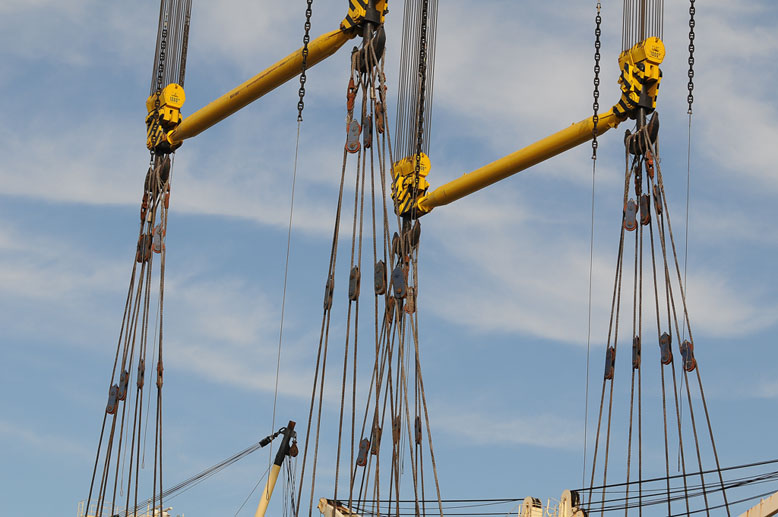 トップの画像は、10月20日七ヶ月ぶりに岸壁から引き上げられ、海に戻すために方向転換をしている様子です。引き上げるために使用されたクレーン船(起重機船)は、寄神建設株式会社所属の4000トン吊『洋翔』が使用されています。