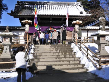 | 節分の豆撒きは、招福の嘉例、立春大吉を迎える行事です。中尊寺の節分会には、歳男・歳女そして大相撲関取を迎え、近隣からも大勢の人が参集し、おかげさまで毎年境内がとても賑やかです。ことに、中尊寺伝承の『魔滅大師』(まめだいし)は、七難を払う護符であり、「雨過天晴」苦難を乗り切る心意気を示すものと好評です。本年は、東関部屋出身の高見盛関を迎えます。乞うご期待!。(※中尊寺HPより) 気になっていた今年の中尊寺節分会でしたが、人気力士「高見盛関」が来られる事を知り、しばらくぶりに中尊寺まで出かけてきました。家からは車で40分ぐらいの距離にありますが、例年になく冷え込みの続いた岩手では、県南地区と言われる平泉でも日中の最高気温がマイナス3度でした。 豆撒きは午後12時半と14時半の二回に行われますが、私は二回目の豆撒き参加になりました。ここでは、「高見盛関」を中心とした豆撒きの様子と福引きの様子を紹介いたします。 |