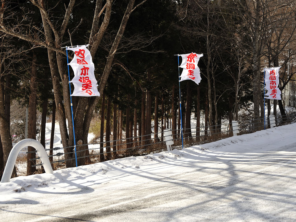| 午前八時家を出る・・・ 東北道は交通量がそれほどは多くないものの、地吹雪や凍結路がありましたがそれほど怖くはありません。十時過ぎに九戸インターを降りナビをセットしたのですが、ナビの誘導が久慈経由になりかなりの回り道になりました。久慈渓流から山形地区に戻り、そこから小国地区を目指し午前十一時二十分頃内間木洞に到着です。しかし、狭い道路一杯にに車が置かれ上までは入られません。今回は余計な場所を走ったので、ここまで215km走ったことになりました。 |