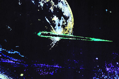 花巻市・未来都市銀河地球鉄道・・・(2009.06.08) 花巻駅から温泉に向かう道路脇の壁に、夜になると幻想的な銀河鉄道の巨大な壁画が出現します。今まで何度もこの場所を通っていましたが、夜間に通ることがないため知らないでいました。 昼間は何の変化もないコンクリートの壁ですが、夜になると幻想的な空間に変身します。銀河鉄道のイメージは、宮守地区にあるめがね橋のライトアップしか知らなかった私でした。 |