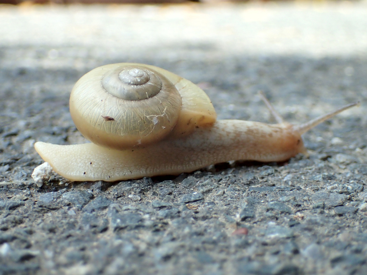 | location:uchinome.jpトップ>自然の表情>動物の表情>アスファルトの上のカタツムリ |