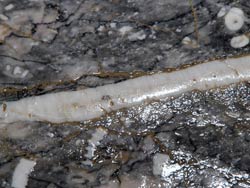 | 通路にあたる床面の様子です。最初の様子は、滝観洞を作っている石灰岩の通路ですが、途中にはウミユリの化石が大量に含まれる部分があります。 |