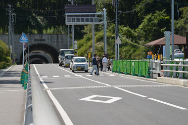 橋を渡りきった場所に駐車場がありますが、展望台等はまだ未整備のようです。これが完成すると橋を見る場所が一段と冴えるようで、完成したらまだ出かけて見たいものです。 正面にはトンネル(隧道)が何個かあり、それぞれ名前がついていました。 |