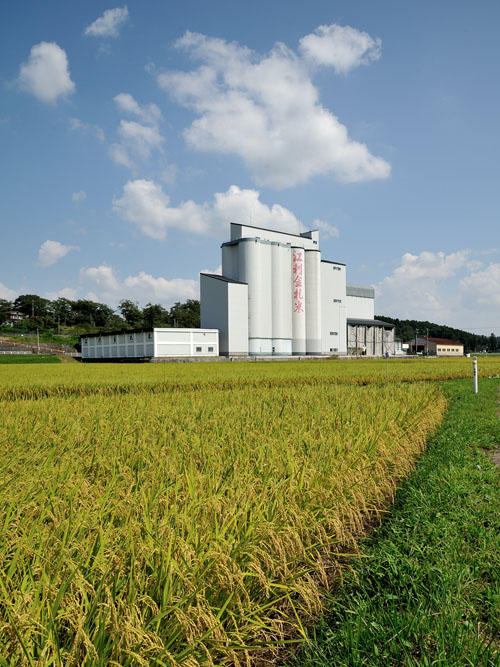 本来ですと、刈り取った稲は玄米にされ、後ろに見える江刺西部カントリーエレベーターに運ばれます。